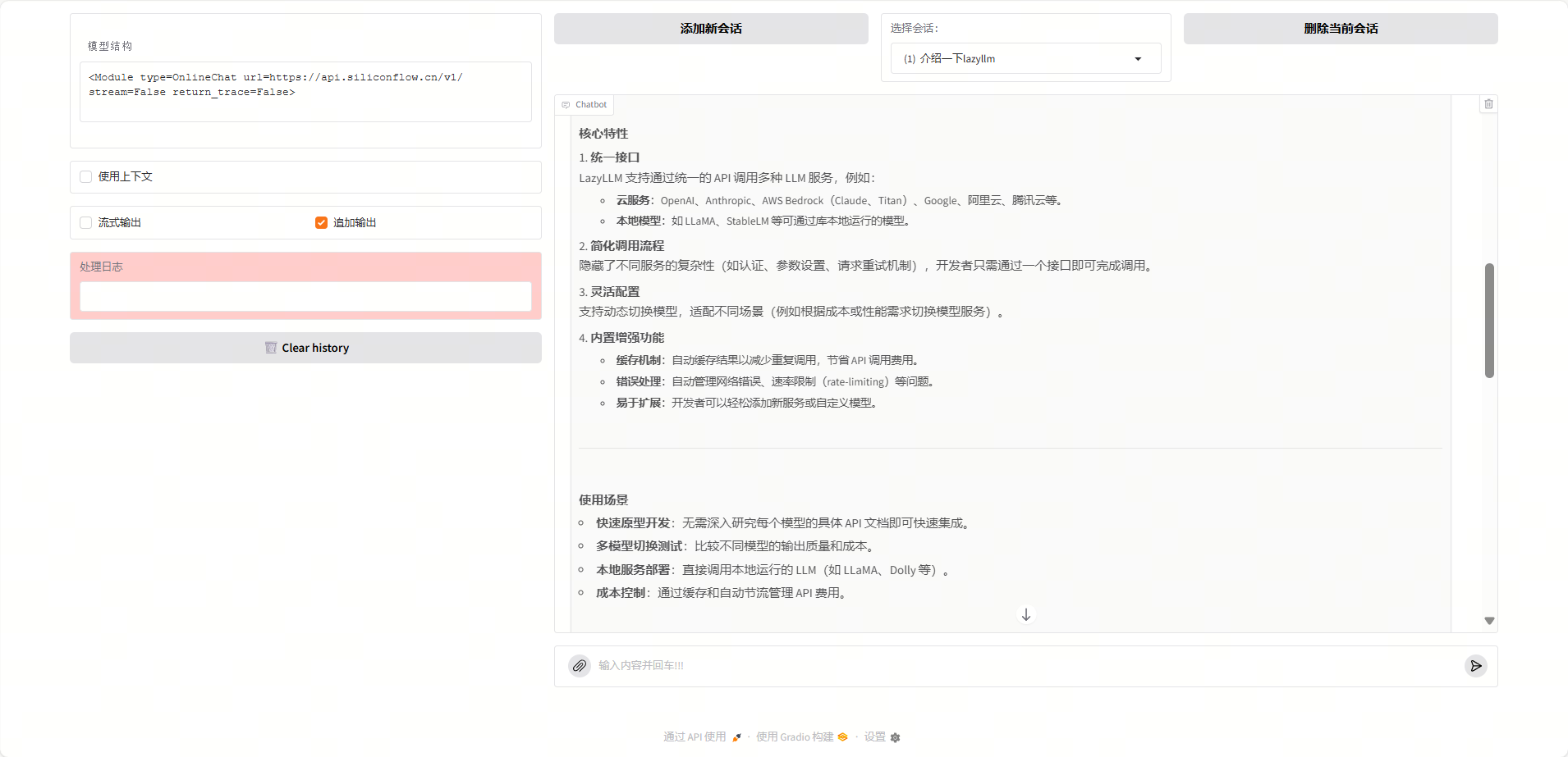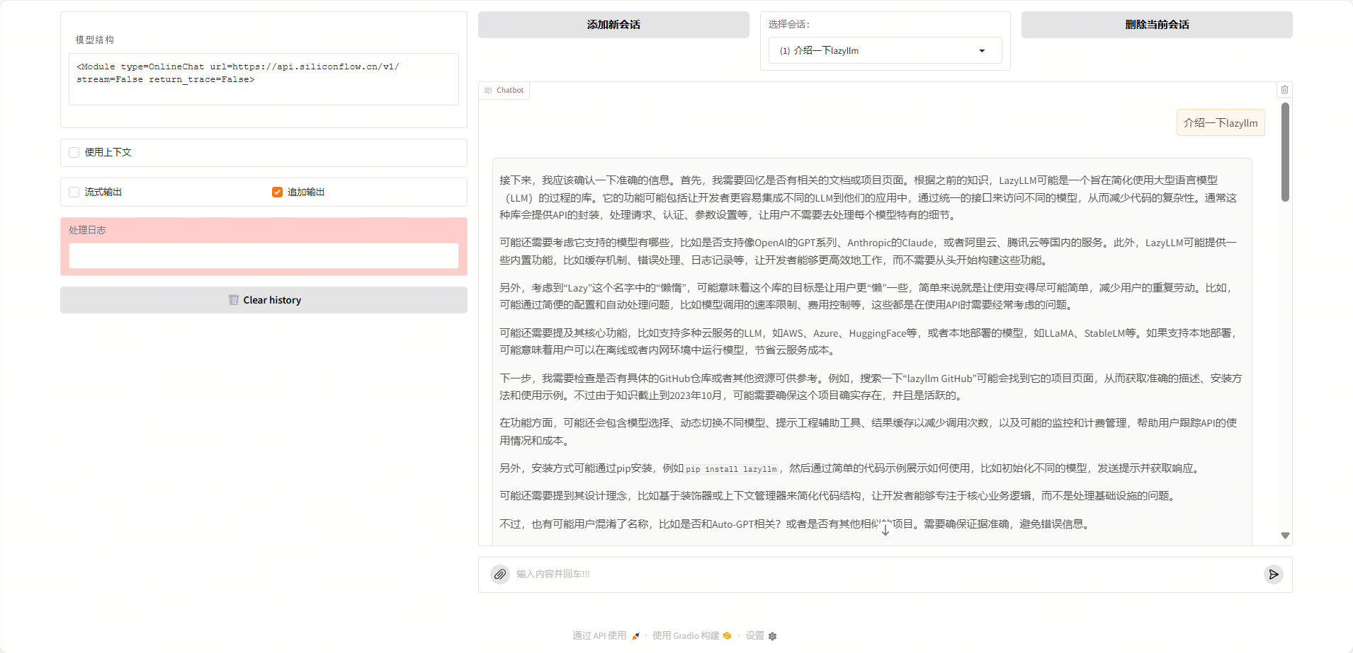 After filling in the api_key, run the code below to quickly call the model and generate a Q&A-style front-end interface: