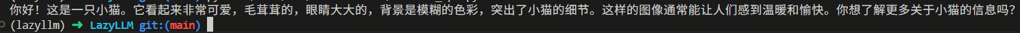 Pass an image through the lazyllm_files parameter in the input and ask about the image content to achieve multimodal question answering.