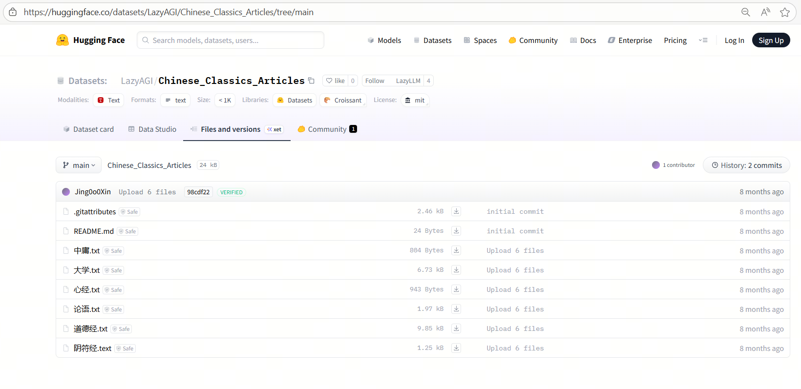 We use Chinese classical texts as an example knowledge base. After downloading, place them in the database folder. Sample dataset download link: Sample Dataset Download