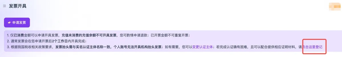 - 登陆 SiliconFlow,进入到 开具发票 页面